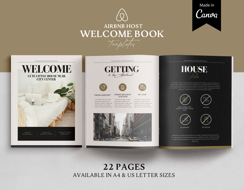 Airbnb Guest Book Template will help you create an elegant, modern, simple welcome book for your guests and tenants.