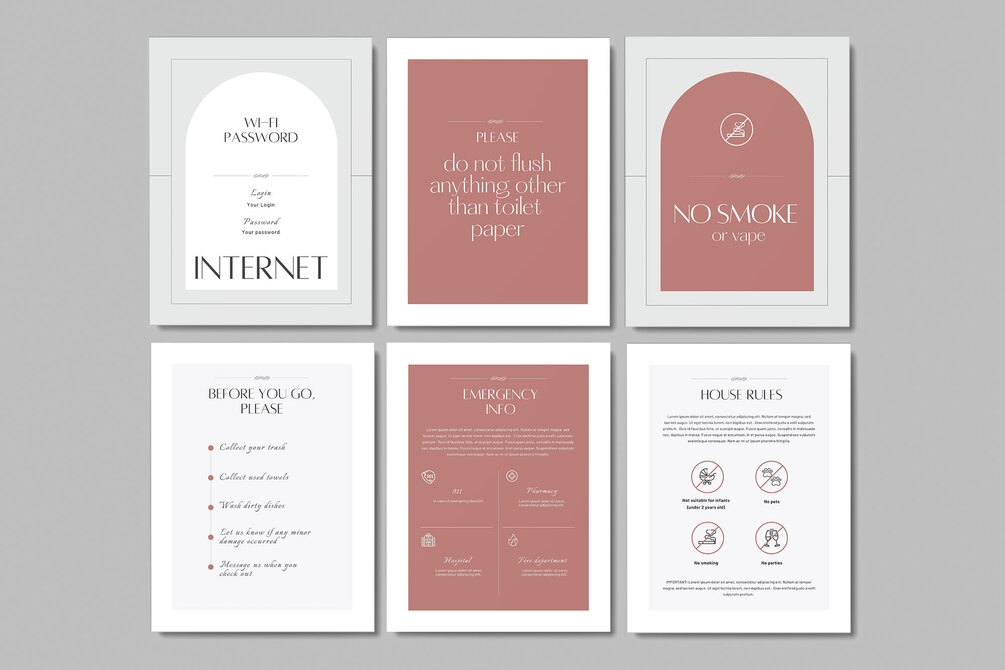 This template will help you to create beautiful signs for your Airbnb.